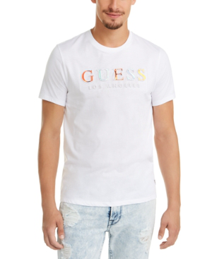Men S Guess Short Sleeve Embossed Stripe Logo Tee T Shirt Crew Neck White L 192541470678 Ebay
