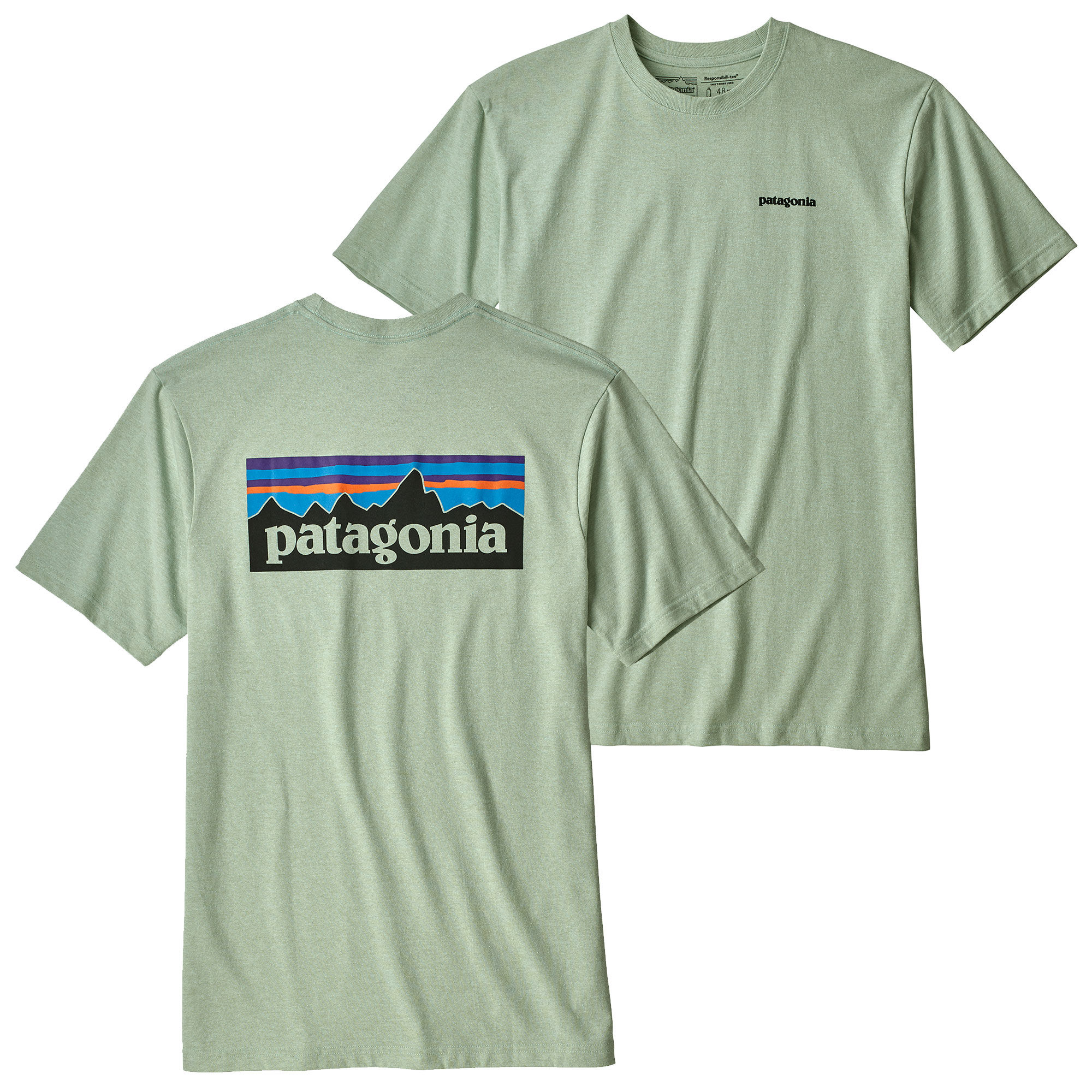 1 for the planet. Xs s m l xl xxl fit. The patagonia mens p 6 logo responsibili tee is made from a comfortable and sturdy 5050 blend of recycled cottonpostconsumer recycled polyester. The patagonia mens p 6 logo responsibili tee is a 100 recycled t shirt made from 48 plastic bottles and 026 lbs.