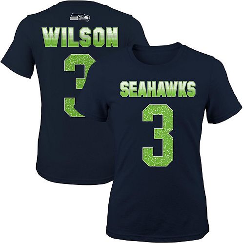 Youth Girls Seattle Seahawks No 3 Russell Wilson College Navy Fade Route T Shirt