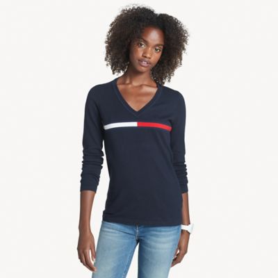 Aesthetic Official Tommy Hilfiger Women Pima Cotton Solid V Neck Logo Sweater Xxl Salmon Pink