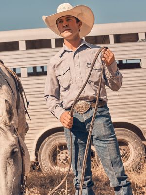Our collection of western wrangler shirts in short sleeve and long sleeve are comfortable and fit great. Looking for a new everyday shirt. Wrangler mens indigood wrangler icons long sleeve shirt good day blue size xl. Wrangler mens long sleeve western logo shirt.